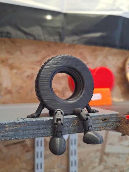 Objet imprimé en 3D : pneu monté sur structure mobile