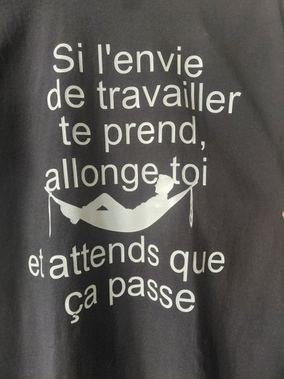 Un t-shirt parfait pour les amateurs de farniente et d'humour décalé. Il affiche clairement la philosophie du repos avant tout!