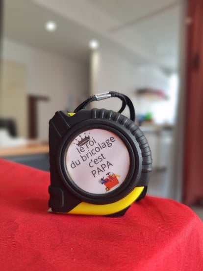 Mètre ruban avec message personnalisé gravé sur le disque